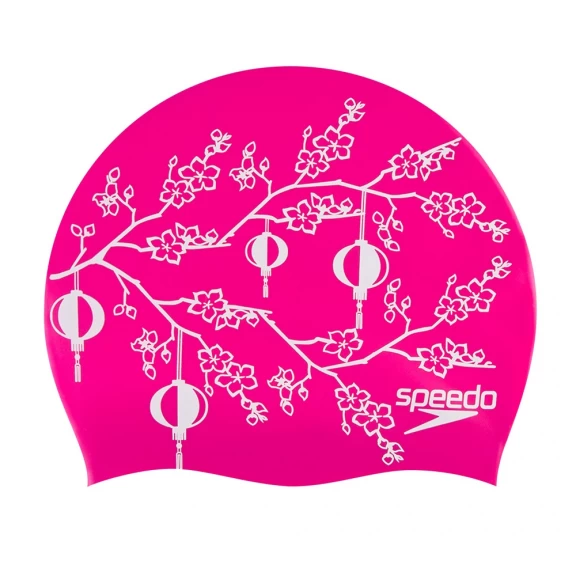Gorro natación Speedo Slogan Print rosa lámparas chinas se ajusta con comodidad a la cabeza para proteger el pelo del cloro y de los agentes químicos del agua de la piscina.